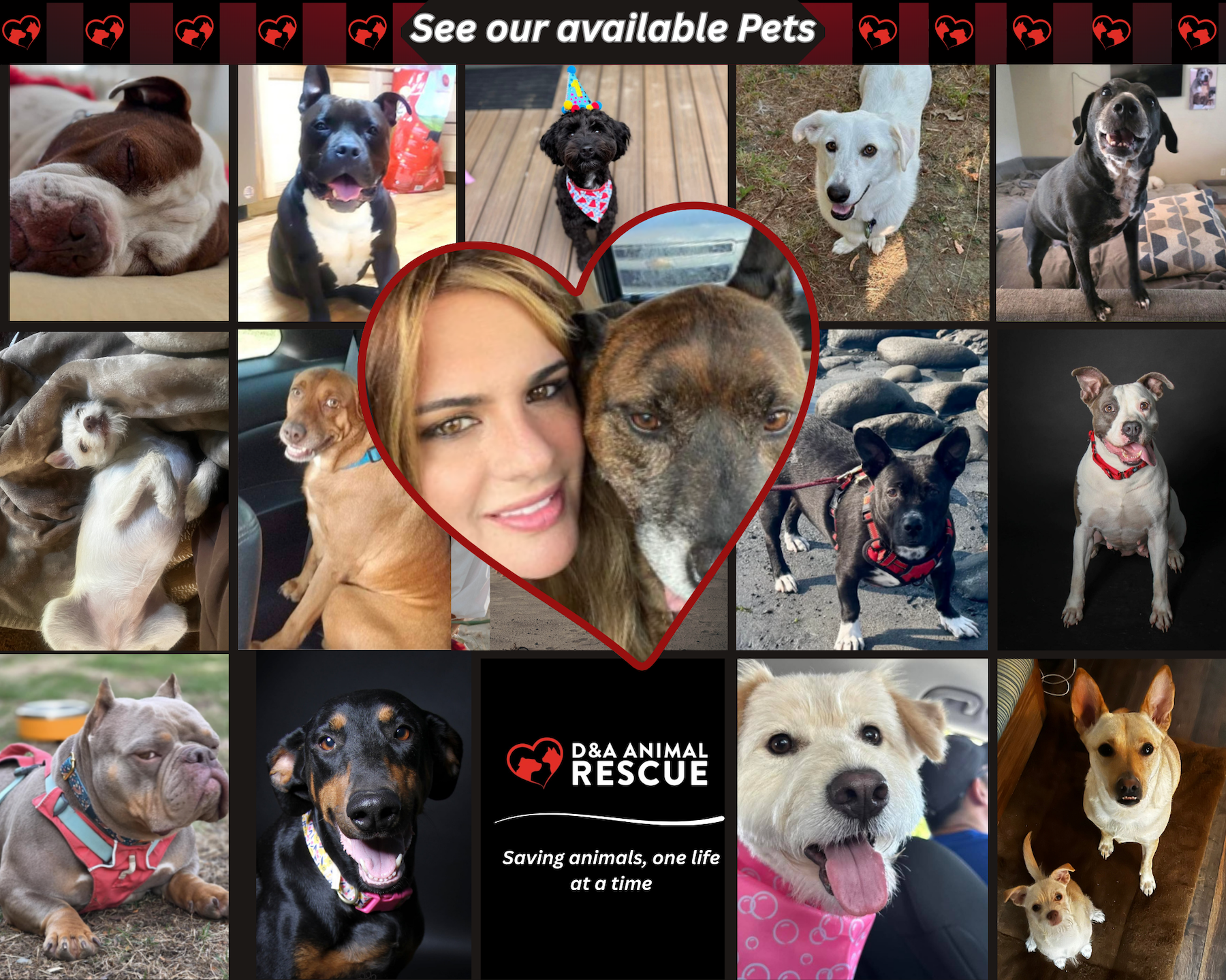 View our gallery of adoptable dogs, cats, puppies, and kittens at D&A Animal Rescue — all pets are vaccinated, vet-checked, and ready for loving homes. Click the button below to see full profiles and apply on Petfinder.